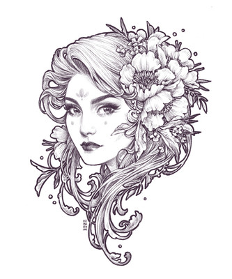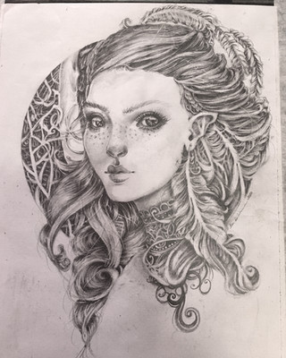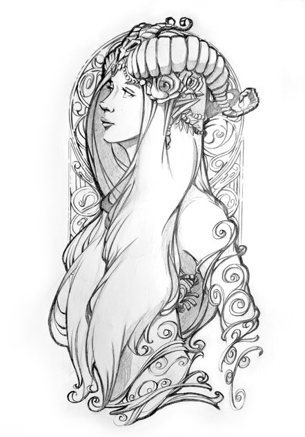 #artnouveau #bird #celticknotwork #elf #fantasy #nature #pencil #princess #woman
