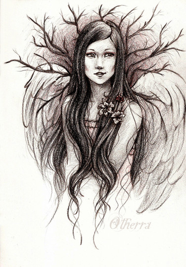 The sketch is really fun and cute, the wings look soft and pretty, the hair is a great attention-grabber, but the face shocks me out of my boots! (I don't even know what that means...) Great job!