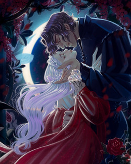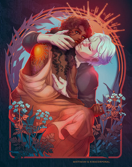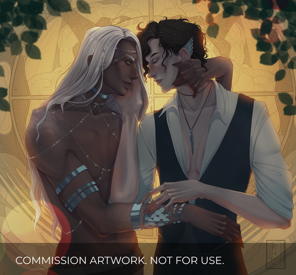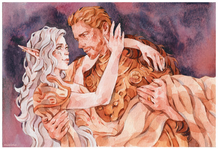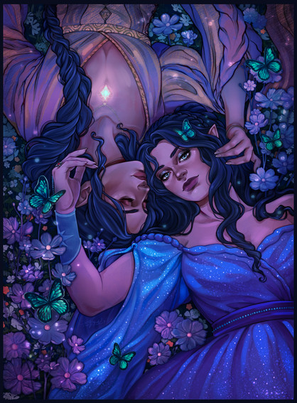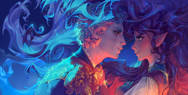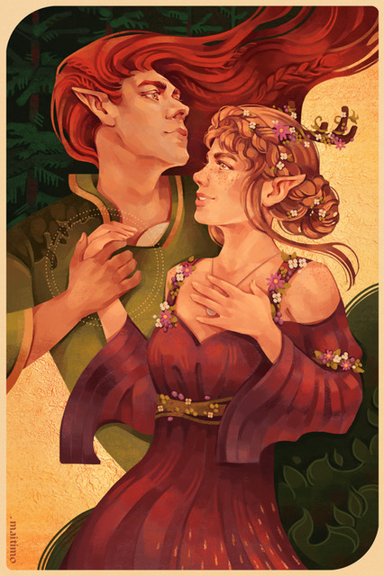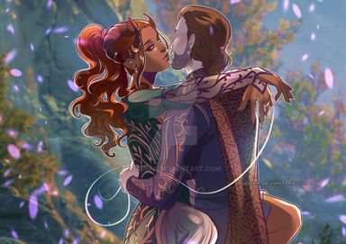 #fantasyart #fantasycharacter #elf #originalcharacter #artnouveau #commission #couple #dragon #flowers #love #lovers #raven #romance #roses #yukimi #lumaris