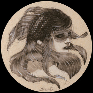 You should do some full color mask images. These are so beautiful, I can't imagine what this one would be like in color.. Oooh, with iridescent scales on the mask.. You would sell SO many prints!