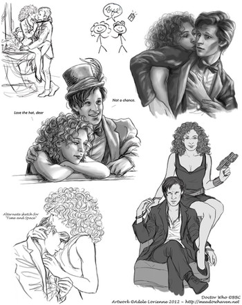 Both are kind of immortal (or won't die soon anyway, unless River has died already working backwards in time) and both are married (sort of) to him. The TARDIS saw him first, but this is so convincing........