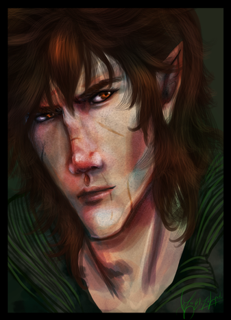 I like how you didn't make him breath-takingly gorgeous. You know... like... a male elf that looks like a girl... lol. Legolas pretty. XD I like how you drew him. He's rough looking but he still has a rugged but handsome look. He looked like he is pained.