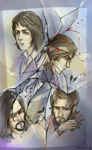 I'm very very glad you created this artwork for it. And, the picture itselt (love the shattered glass framing you chose for it, that is so perfect in a variety of ways, from story context, to artistic atmosphere in the painting itself. It really shows how "shattered" that story gets. Great idea!)