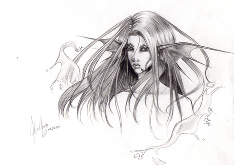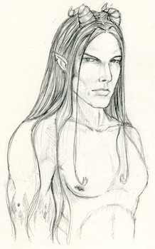 Wow, beautiful drawing. I love the movement in his hair and into the background! Also the scales on his arm are a nice touch.