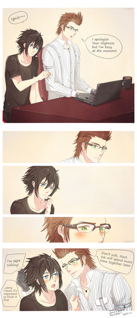 And Ignis' expression is awesome. You can feel how desperately he's trying not to cave! Wonderful as always.