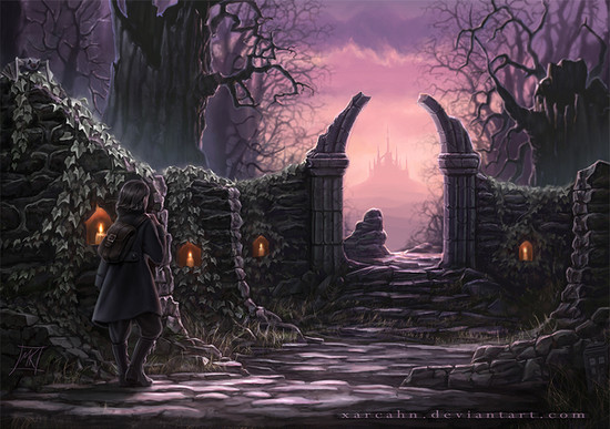 Finally finished! Falen in the black heart of Marcale, with the old entrance of Widdenwael nearby. Painting this maxed my patience to the extreme. Over a month of planning, dozens of references used, and my arm hurt from my wrist to my elbow by the time I was finished. One of the biggest paintings I ever attempted back around 2004/2005.You can learn more about "The Wars of Avenan" storyline and characters here: www.meadowhaven.net/wars-of-av…