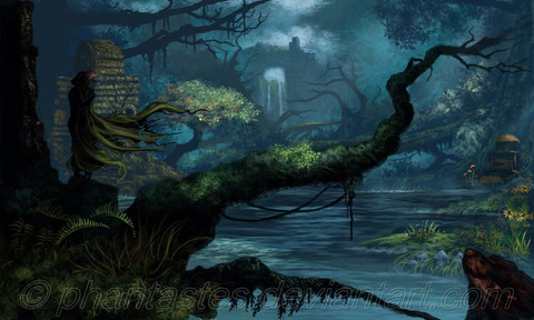 I already commented on this one on Elfwood, but I just have to do it again. This is another one of my favorites of your work and I must say that it is one great piece. From the foliage to the trees to Falen(?), you seemed to have mastered it all and it shows through your artwork.