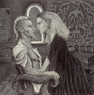 I don't know the story between these two characters, but the tension in the scene reminds me of that between Hamlet and Gertrude near the beginning of that play. Really subtle and detailed work, good job.
