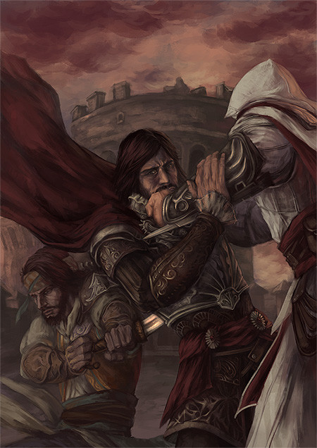 I'm surprised you haven't gotten any comments yet, I think this looks fantastic! I absolutely love the amount of detail. The background seems to compete a bit with the foreground, but I'm terrible with backgrounds so I'm also in awe at the amount of detail and time you spent on the background. I really don't know what the right balance is, just a passing comment. Saying that, I love how the buildings become lighter and fade as they get farther away. The flags windows and details on the clothing. I really get a feel for the setting of the piece, makes me wonder what in the world is happening and the story that goes along with the picture. You did great with the people and especially the one to the left I imagine the face was a trick at the angle its all.