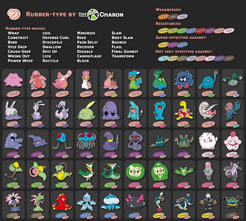 Rubber should have an immunity to electric types. Although steel conducts electricity and that type isnβt immune to it, rubber is electricity proof and DESIGNED for keeping away electricity! It would be smart to make rubber have an immunity to the electric type. Not like I have a say in any of this, though. Also voltorb and electrode should be rubber type as well.