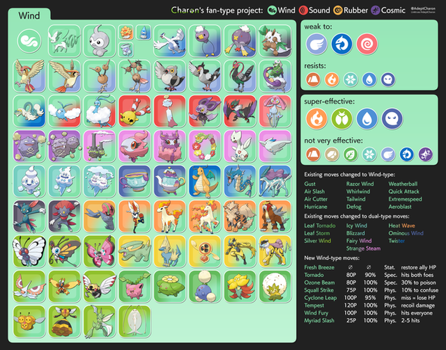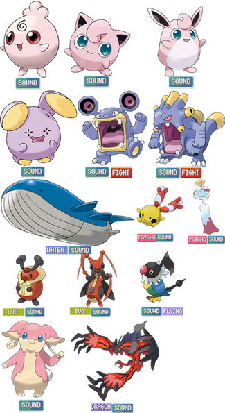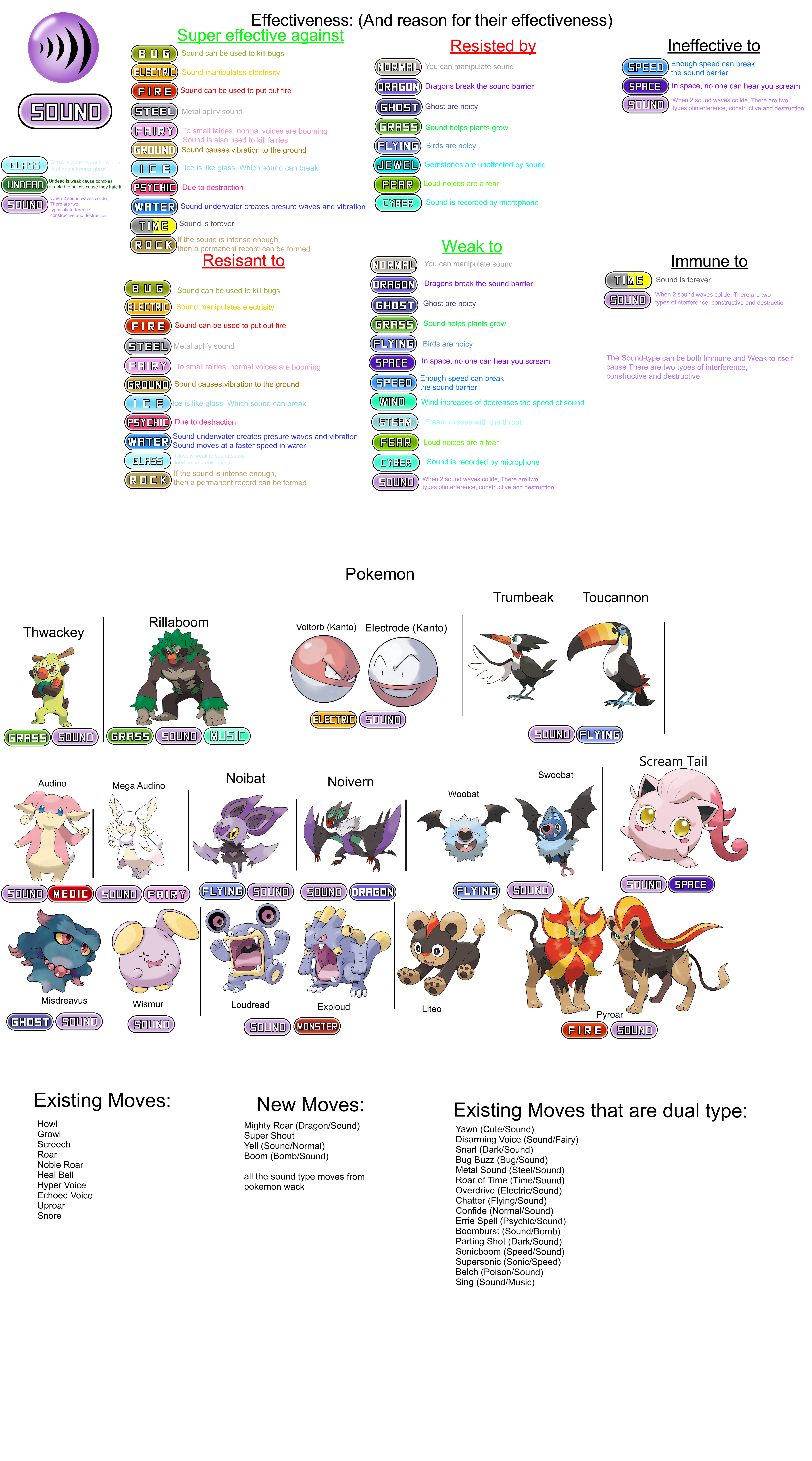 More updated version here:Β www.deviantart.com/adeptcharonβ¦My gen8 take on Sound as a Pokemon type, showcasing existing Pokemon that would be potential candidates for being retyped, as well as the strengths and weaknesses of the type.
