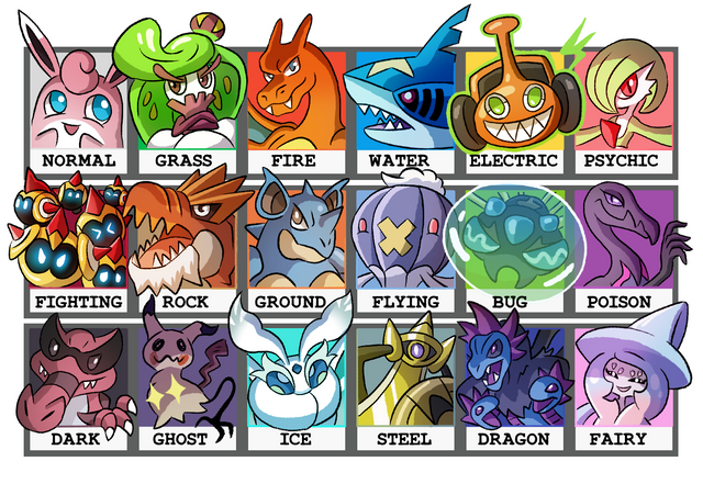 Saw an overview like this on the internetz, figured I'd expand it a bit and make my own fancy version of it.Basically, it's a grid of all possible type combinations, filled with one PKMN each (unless a combination isn't used yet).
