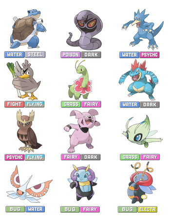 Of course there is many combinations with multiple PKMN I could've picked to represent it. In those cases I wanted to pick a PKMN as close as it could get to being generic and/or typical.