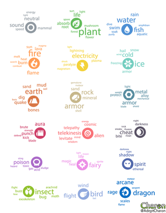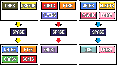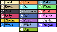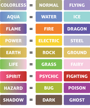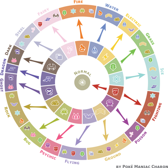 It's interesting how not only do the colors of types on the inside correspond to some extent to those of types on the outside, but there's often also a loose thematic connection as well. For instance, Ground and Rock are both connected to the earth, Fire and Poison are both connected to chemical reactions and combustion tends to generate pollution, Psychic and Ghost to the supernatural, Fighting and Dark to combat styles, Electric and Steel to technology, Grass and Bug to the biosphere...