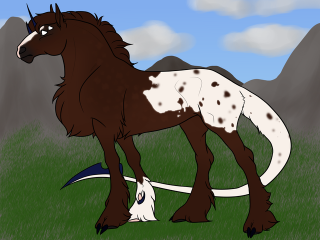 Phenotype: Flaxen chestnut tobiano with monochromatic mane, classic blade