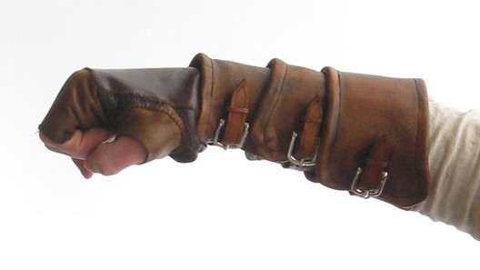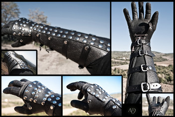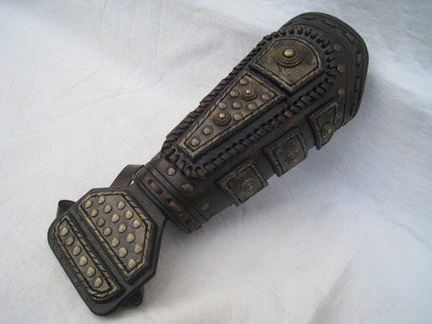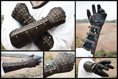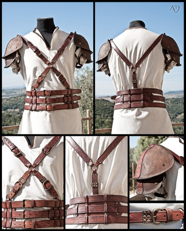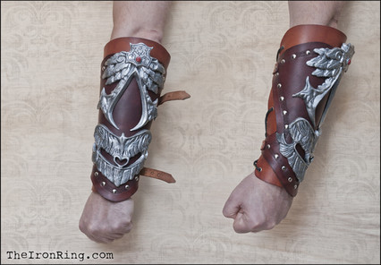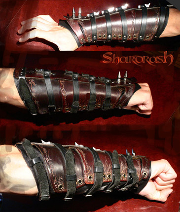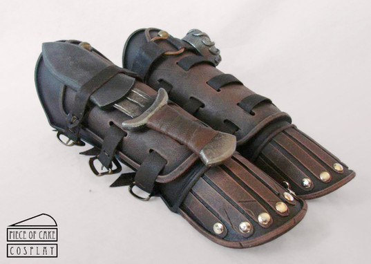 It's a leather composed bracers, made with split leather and veg tanned leather. It fits well for Larp games, cosplay and perfect for a assassin creed style costume.For sale on my Etsy Shop: [link]