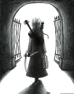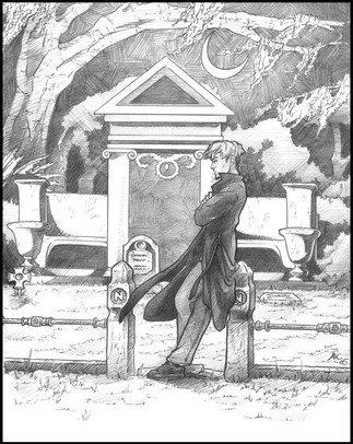 Bod (left) and Silas (right) from Neil Gaiman's phantasmatastical new story The Graveyard Book. Silas is stepping out for the night, as he usually does, but Bod has one last question to ask.