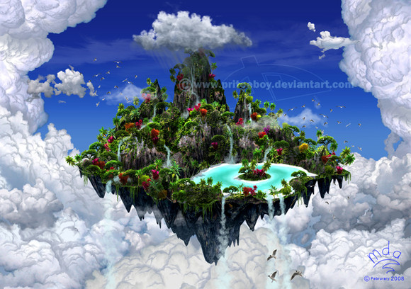 That floating island reminds me of the anime "Castle in the Sky" ^____^ Great job!