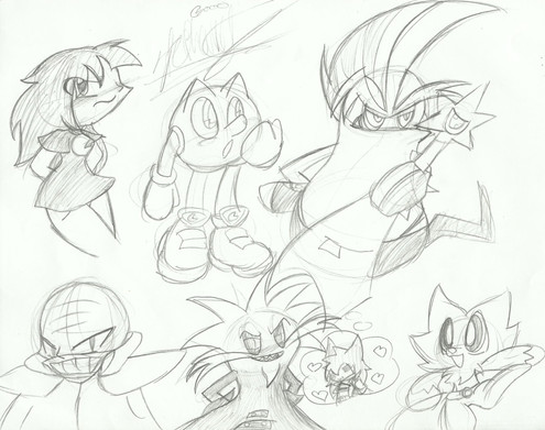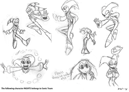 Ahhh, I was bored....again. I stayed home today to finish all of the homework I needed to catch up on and thought I would doodlize something up again. Actually it just started with the NiGHTS holding the checkered flag...Then I drew Reala crying and Jackle, and then I started drawing all those other doodles soon after.Probably will go in my scraps later, like da other one did X3