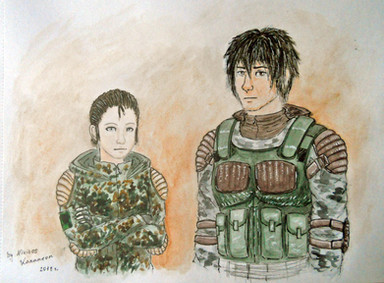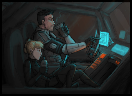 XCOM 2 comes out next week so I'd thought I would revisit my first piece of fanart I did when it was annouced. Way back in June I did a small digital piece with Central Officer Bradford and me as the Commander reunited for XCOM 2.Β So here Central and I are again. I had alot of fun designing my XCOM 2 uniform.These scene was inspired by something I heard Central say in one of the preview videos. Basically without getting spoileress he cracks a joke. It made me laugh out loud when I heard it and I could imagine him saying it to the Commander to make them laugh. The Commander in this piece as you can see is looking quite amused at Central, while Central showing a wry smile looks quite proud of his quip.
