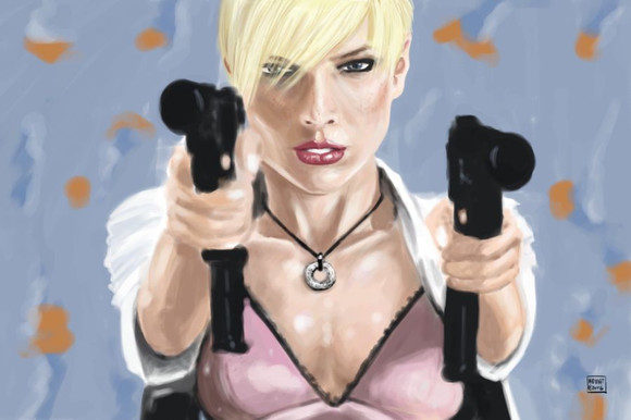 Beautiful job. Its got that nice noir feeling to it. Just by the way the guns are shaded and their expressions look, all contribute to the just dark and illusive feeling.