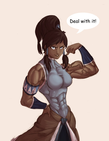Doesn't disprove the fact that Korra is immensely powerful and muscly. Try coming up with another excuse.