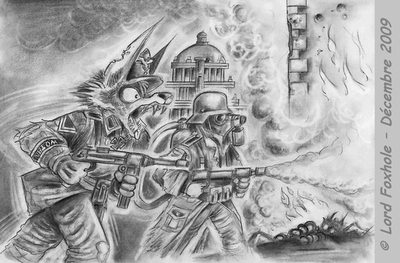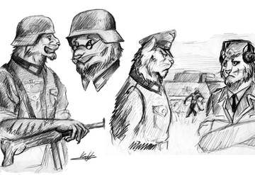 This might be a coverpage for the WWII and I are planning to do if we ever get around to actually producing it. The character looking at the 'camera' is supposed to be the lynx character posted earlier.Related content