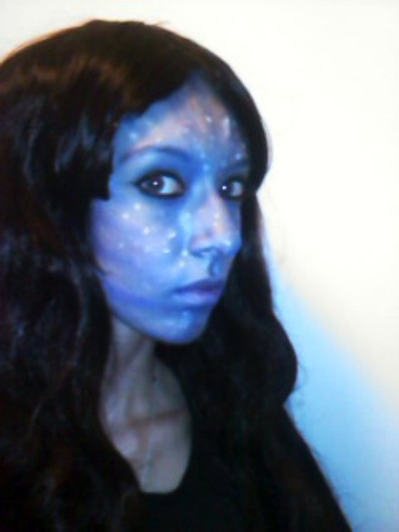 An attempt at an Avatar cosplay. Only working with body paints at this time. I may or may not complete this and make it a real cosplay...who knows.Edited the eye color, ear(s), and background/text