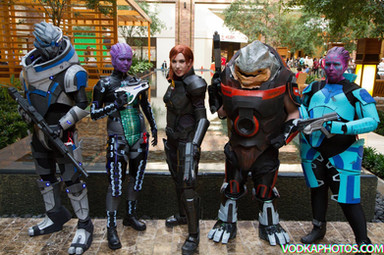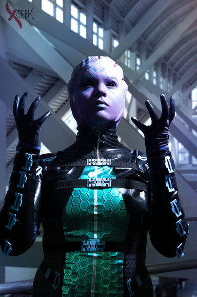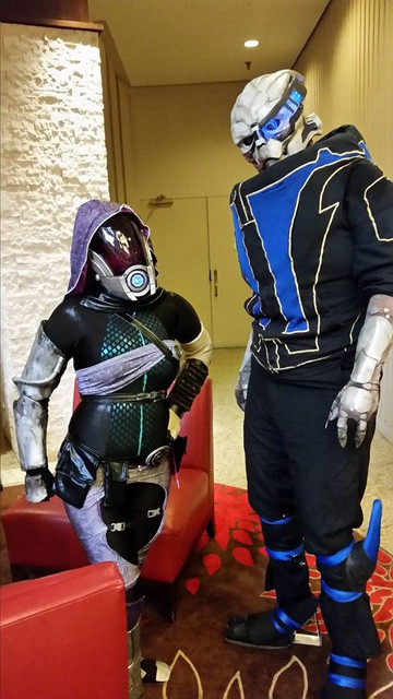 I premiered my Asari Huntress/Commando cosplay at A-kon 25I didn't get to wear it as long as I wanted to but I'm okay with that. At least I got to hang out with my other Mass Effect cosplaying buddies ^_^
