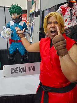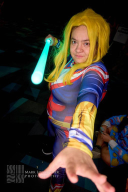 The white is very translucent, which is what I was going for and is the base layer of the makeup. On my neck I have the yellow and black smudge look trailing it down into my upper chest/shoulder area. For the face I sponged the black to get that facial definition. The spike/horn thingies are attached via latex. Wearing contacts. Eye makeup is all eyeshadow colors included (black, orange, red, yellow, brown)