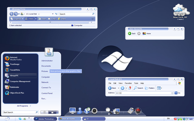 Updated to work fine with Windows XP, Vista and 7 Seven.The first version of this skin was made in 2003!