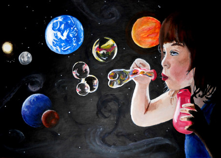 This is really great work. I am pleasantly in awe over this creation, here. Truthfully, I love the application of the colors you use. It is really fantastic. The web lines and splashmarks are used remarkably towards an effect that resonates with amazement. The inclusion of what appears to be a meteor bursting through the moon is incredible. I guess the meteors coming is the end, eh?