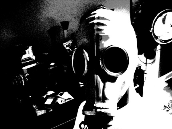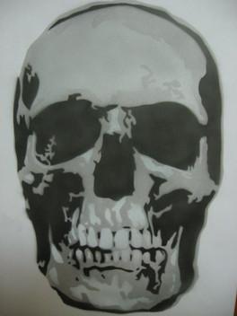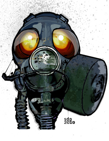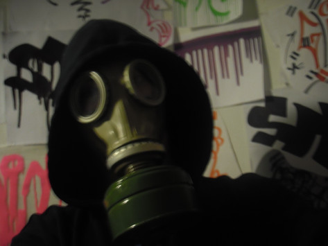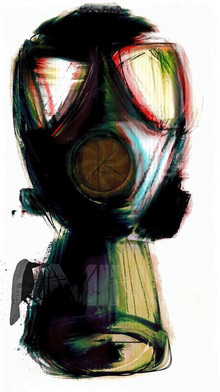 Gasmask stencil, made on the lid of my laptop.Painted with acrylic paint, with airbrush, used stencils thou.