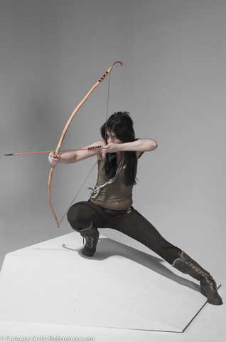 I have no archery training; `jademacalla was kind enough to allow me to use his bow and give me some basic tips. Thus, these are probably not accurate references for a skilled archer. These photos were taken with a non-realistic approach to archery in mind; they are more geared to the magical and the fantasy. Please consider this when using them for reference.