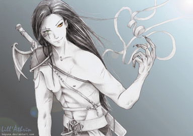 damn, that is all that i can really say about this one. It is a great piece. I like the way that you did the shading to make it look so realistic and how that the sword and tattoos are cool designs.