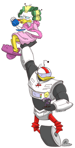 An interview with Gizmoduck that he is Duckburg's real hero in the world!Picture 1 (Redraw): Zan Owlson & Gizmoduck