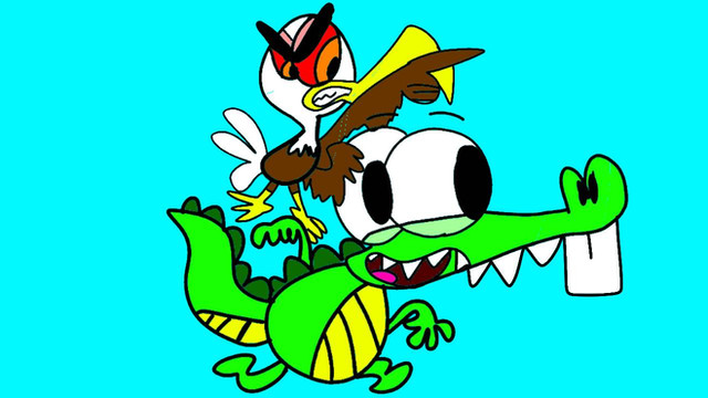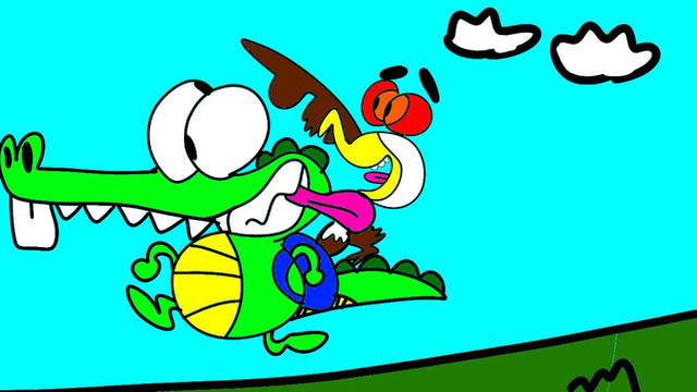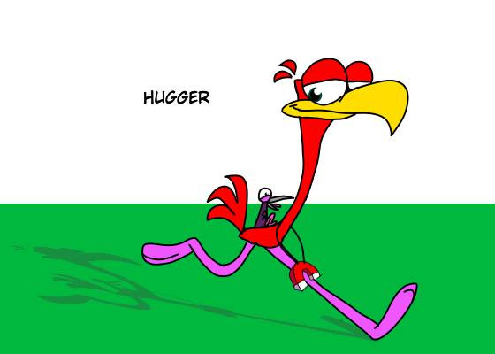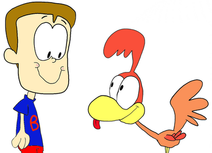 Billy from The Grim Adventures of Billy and Mandy riding on Ed The Ostrich from Cracke as he runs like a Faster Ostrich.