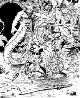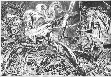 On your main page I left a longer message to express my admiration of your work, which I only discovered recently. Two MAJOR artists I forgot to mention in the list of your peers are of course Wrightson and Adams... All in all, to me you're up there with the best in the business!