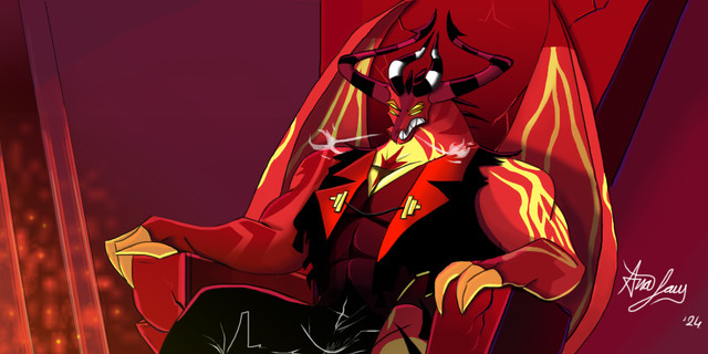 #dragon #scalie #anthro #claws #furry #general #male #man #red #satan #solo #wings #yellow #looking_at_viewer #helluvaboss #helluvabossfanart #adrovmike