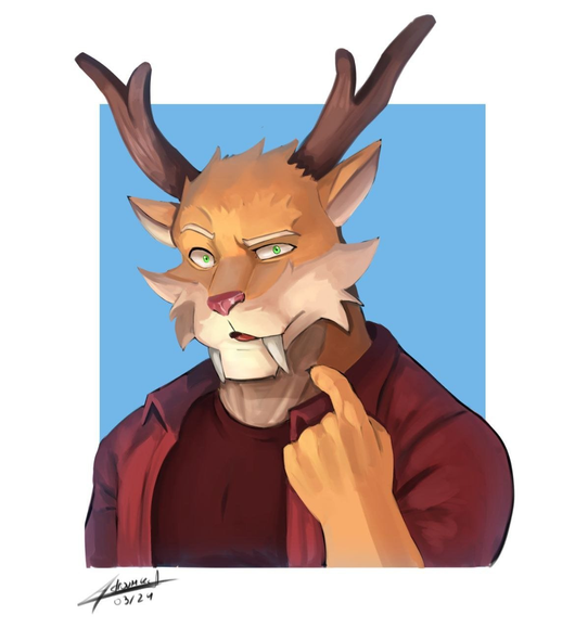#artdigital #catfurry #furry #furryanthro #oc #painting #illustrationdigital #artfurry #adrovmike #boy #digitalart #feline #male #man #pose #sabertooth #sfw #tiger #folllowme #chonky