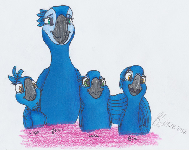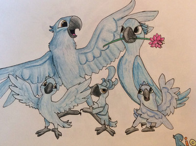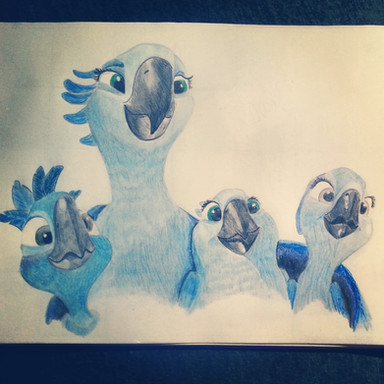 this is a good Drawing, love the expresstion's , jewel's detailing is very close, blu's detailing and color is off. good detailing on the young one's.