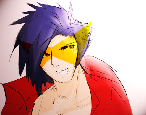 i love his sharky fin hair, those scary teeth, and especially those cray-zee eyes. looks a bit like he wants to eat my head. o: