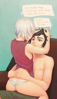 There are things that this creates in my mind, dirty things......Anyway! Great job this is amazings! I don't know but Tenshi has really drawn my attention! It could be that he's cute or that he's albino or something! But I can't get enough! I shall search for more pictures of him and will enjoy it!