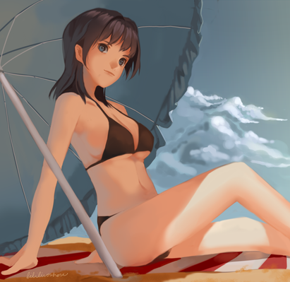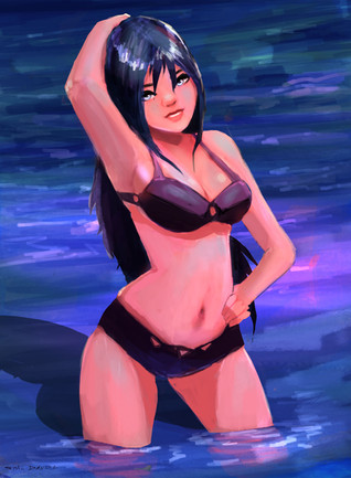 Anyways I love what you did with this pic! It looks even more painted than usual. I like how she seamlessly blends in with the background. Her anatomy's great too!