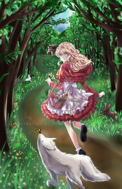 #anime #girl #oc #artwork #drawing #forest #illustration #manga #redridinghood #wolf #mangaanimegirl