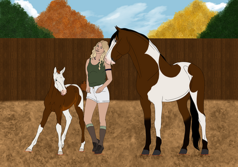 History-Bridget had originally come to shadow hill as a project pony for Erin to train and sell on, however Eliana began to fall in love with the small painted palomino mare often taking her out to the arena and playing horse show with herself, Erin of course realized that the easygoing mare was perfect for Eliana after watching the mare nap happily while Eli practiced her show braids