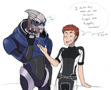 A gifty for Virusq who puts up with a lot of my shit on a daily basis lately, a renegade kiss interrupt! I personally would have wanted a sappy paragon mouth smother (with shepard's hand) telling him to think about what he's saying for a minute. I mean you're really going to ask the chick you turned down for dating advice 3 seconds afterwards?