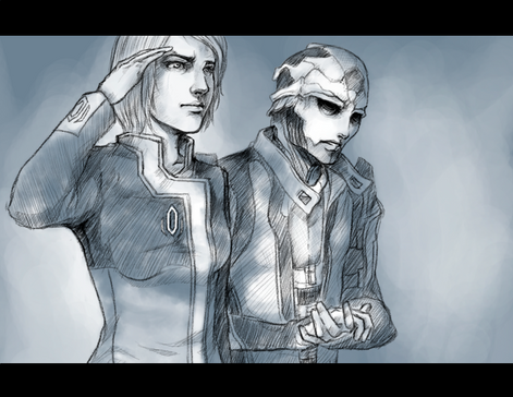 Gift art for mah frand. Her Shepard and Garrus.I had a hard time deciding what to draw.