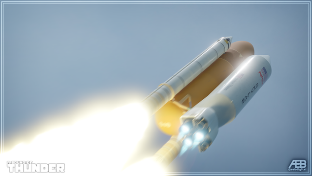 Proposed shuttle-derived heavy lift rocket.From my alternate history story A Sound of Thunder: The Rise of the Soviet Superbooster.
