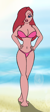 Jessica Rabbit in a Bikini because it's hot. Also, coloured with markers because I wanted practice. Also Also, using markers when it's stupid hot isn't the best of ideas, see colour variation between skin at top and bottom of image. Also Also Also, **** Copic Markers that cause colours to bleed.Related content